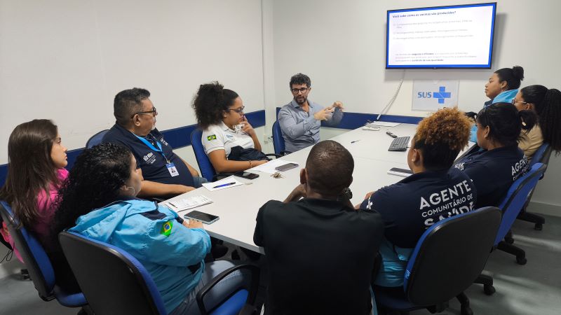 Nos turnos da manhã e tarde do dia 01 de agosto de 2025, o preceptor Alexander Rocha ministrou uma aula do curso Técnico do Projeto Mais Saúde com Agente, na sala de reunião da OTICS-Rio Madureira. Participaram da aula os Agentes Comunitários de Saúde (ACS) e Agentes de Combate às Endemias (ACE).