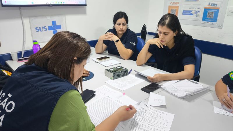 Estiveram presentes os(as) profissionais Thaís Brasil, Taís Suane e Suellen Faria, da Divisão de Vigilância em Saúde (DVS); Flávia Marques e Bruno Corrêa, do Departamento de Administração e Planejamento em Saúde (DAPS); representantes das Linhas de Cuidado da Criança e da Mulher; e Gilselia Almeida, médica do Programa Mais Médicos.