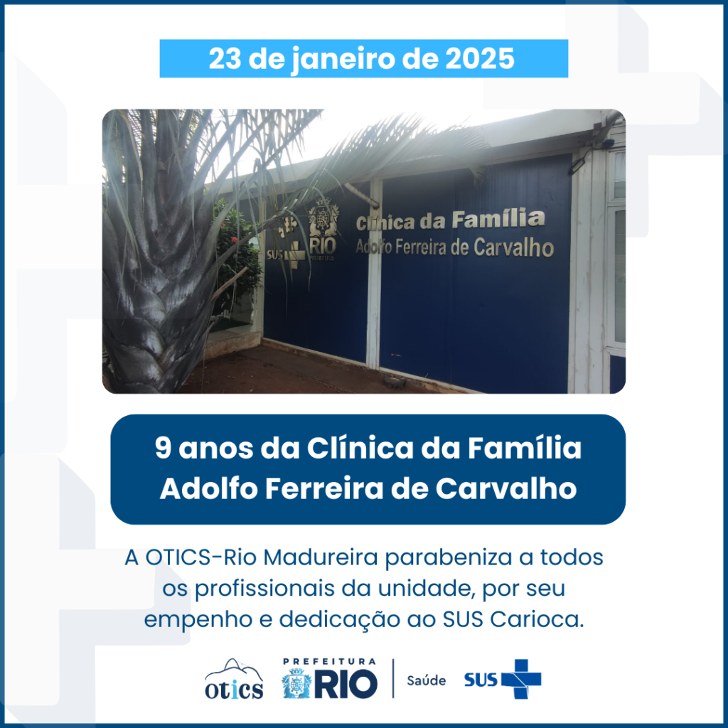 No dia 23 de janeiro de 2026, comemoram-se 10 anos de inauguração da Clínica da Família Adolfo Ferreira de Carvalho. Localizada no bairro Barros Filho, pertencente a Área de Planejamento 3.3 (AP 3.3), essa unidade representa um marco para a saúde pública carioca. Gostaríamos de parabenizar todos os profissionais pela dedicação e cuidado com os usuários durante esses anos.
