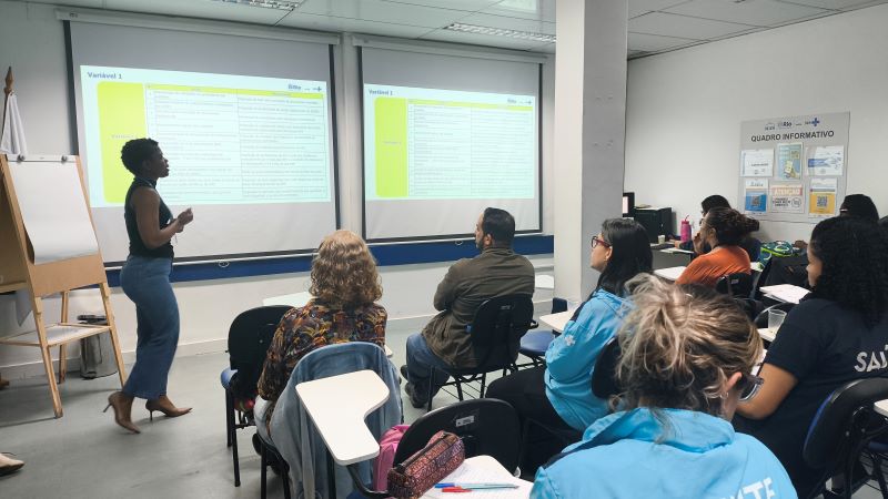 Aconteceu no dia 9 de setembro de 2025, o segundo dia do Curso Introdutório em Saúde da Família. Os profissionais Thaísa Vieira, apoiadora da linha de saúde da criança da Divisão de Ações e Programas de Saúde (DAPS), Tatiane Gonçalves, supervisora de planejamento da Associação Paulista para o Desenvolvimento da Medicina (SPDM), Thiago Tavares, especialista em educação da Associação Paulista para o Desenvolvimento da Medicina (SPDM) e Camilla Del Giudice, apoiadora da linha de tuberculose da DAPS, conduziram a atividade que foi realizada no auditório da OTICS Madureira e contou com a participação de colaboradores das unidades de saúde do território da AP 3.3. O curso teve como objetivo proporcionar um aprofundamento teórico sobre a Atenção Primária à Saúde (APS).