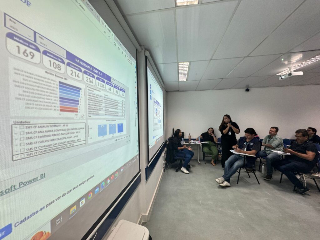 As Profissionais da Divisão de Vigilância em Saúde (DVS) Taís Suane e Thaís Brasil, promoveram a reunião da Comissão de Prevenção de Óbitos Maternos, Infantis